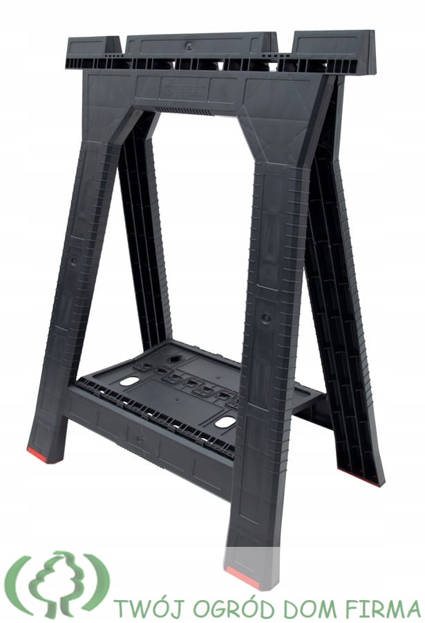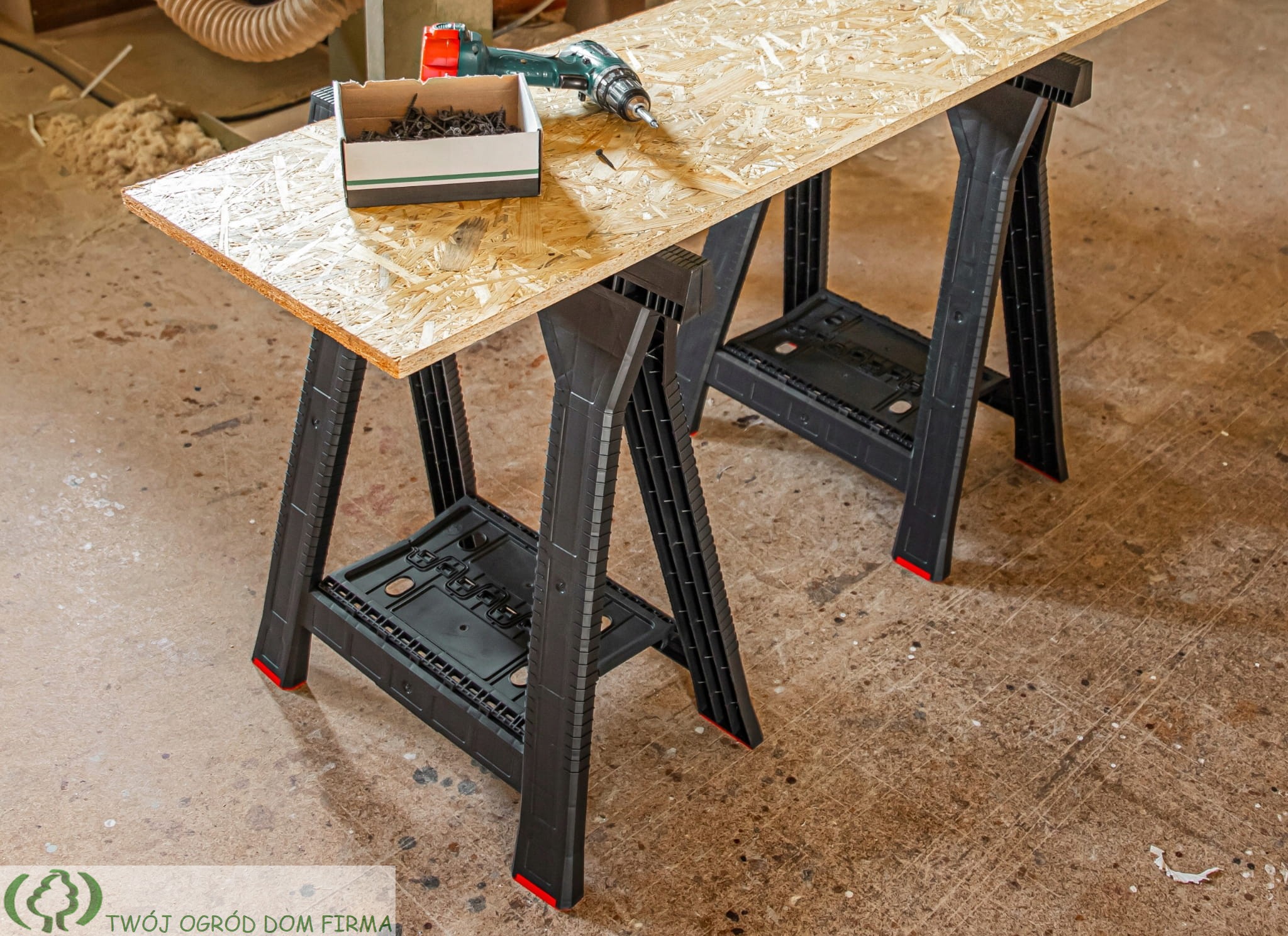 Stojak warsztatowy zawiera funkcjonalne szczeliny stabilizujące do cięcia materiałów.